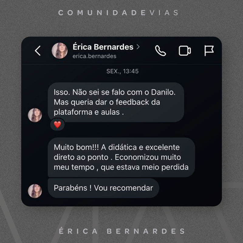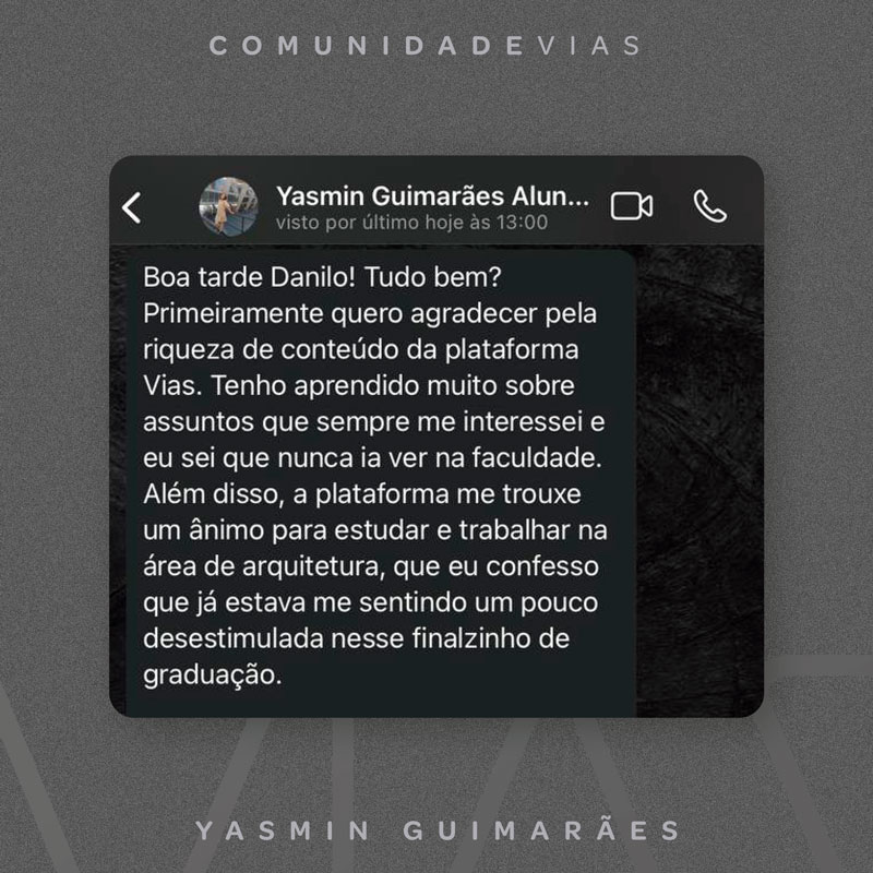 Eu mesmo vou te acompanhar de perto e te ajudar com todas as suas dificuldades referentes ao curso, seja em nosso grupo ou em contato individual