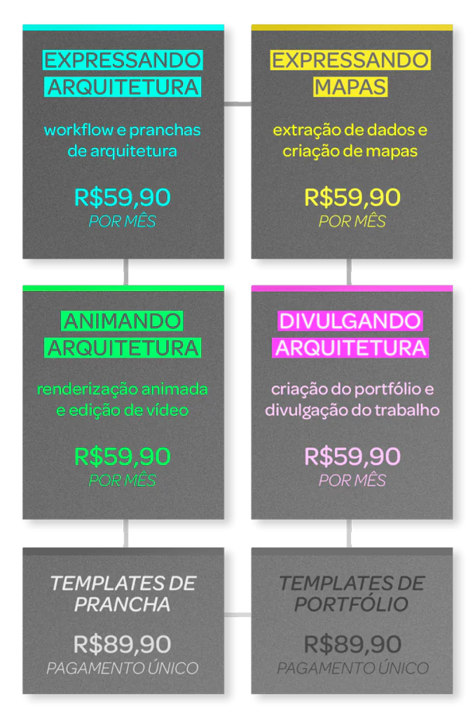Você receberá certificados do Expressando Arquitetura, Expressando Mapas, Animando Arquitetura e Divulgando Arquitetura após finalizar cada curso e nos entregar seu trabalho final